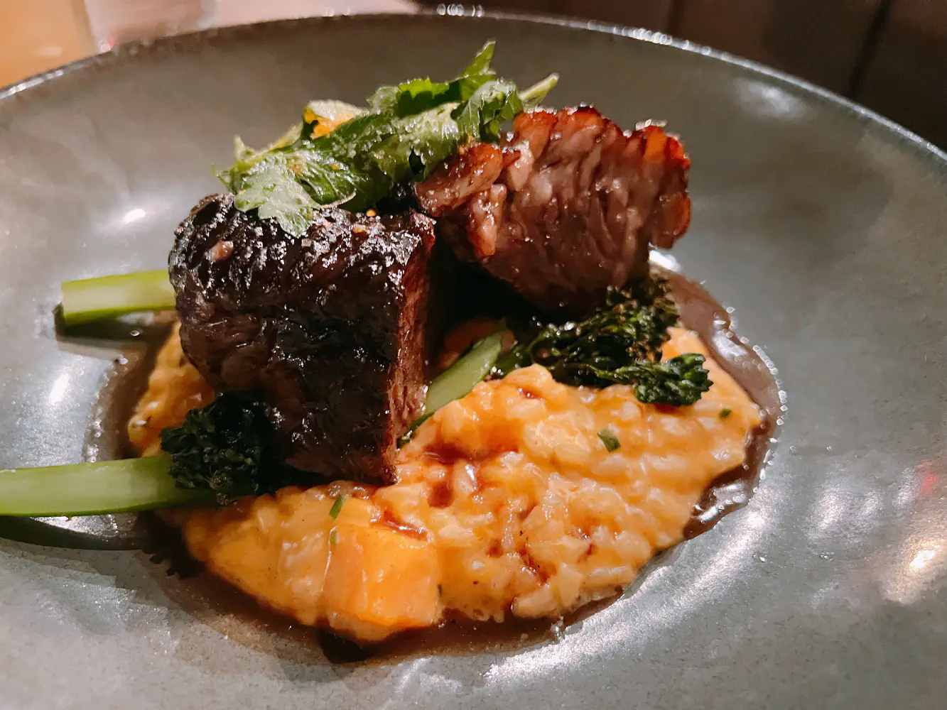 The Braised Short Rib ($38) came with butternut squash risotto, grilled broccolini, and orange gremolata. The short rib was very soft and fatty. It had lots of red wine flavor in it. The risotto was also really good too. The portion size for the price was about right.