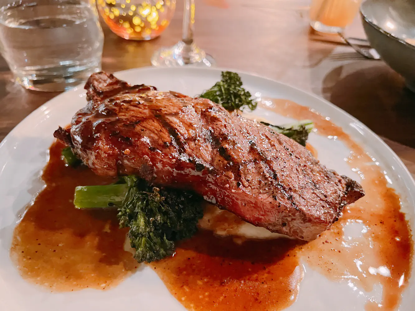 The 12 oz. NY Strip ($45) came with roasted garlic mashed potatoes, grilled broccolini, and red wine sauce. The steak was cooked a perfect medium rare, and it was quite flavorful. It had a great char to it, and it didn’t have a whole lot of fat. The garnishes all tasted pretty good too.