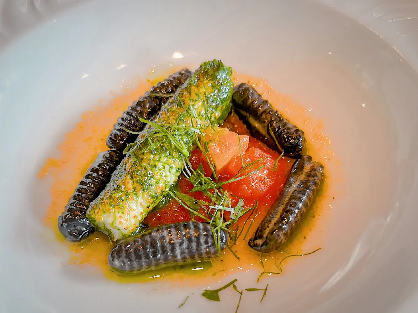 For the first course, my partner ordered the Octopus, which was a Portuguese octopus a la blancha, black garlic, basil emulsion, zucchini, and crisp potato. The octopus was deliciously cooked, but it was similar to other Spanish octopus legs.