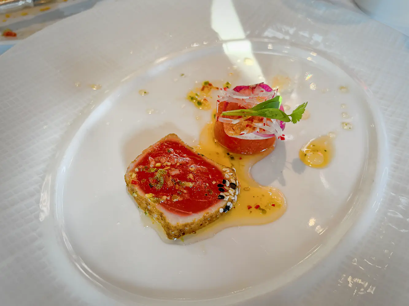 And lastly, the Tuna Tartare came with a finger lime salad on top and a white soy lime leaf vinaigrette. The tuna was good and fresh, but it was not something that was out of your world. It was probably the least favorite of these 3 chef courtesy items, although it was good.