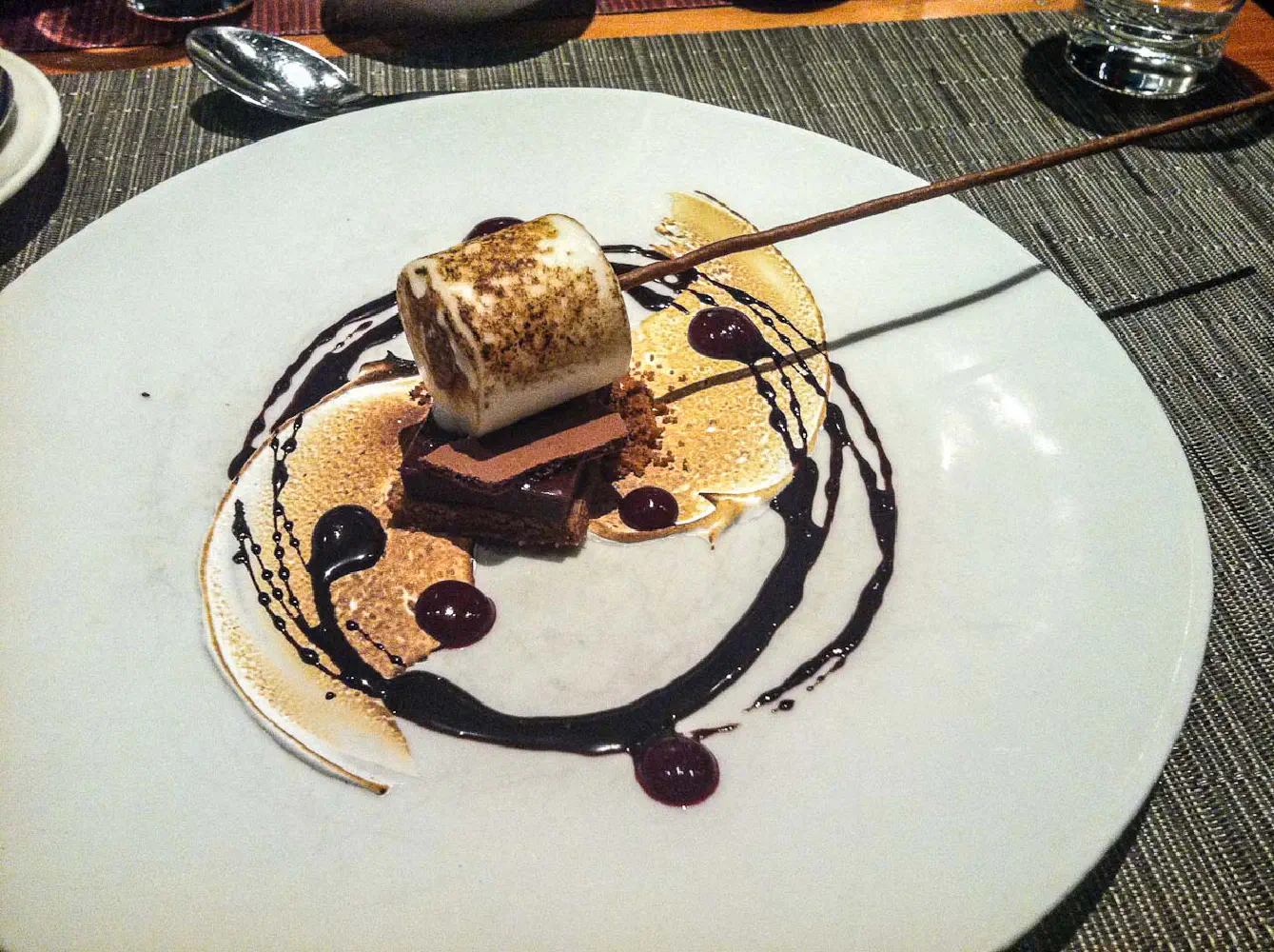 12. S’mores, bitter cocoa, meringue, black currant. This was also really good. It’s their take on smores. The marshmallow is actually ice cream of some sort. The actual marshmallows were charred onto the plate for decor. The stick was edible. The dark chocolate wasn’t too sweet and there was some strange spicy kick to it. All in all, it was pretty good.