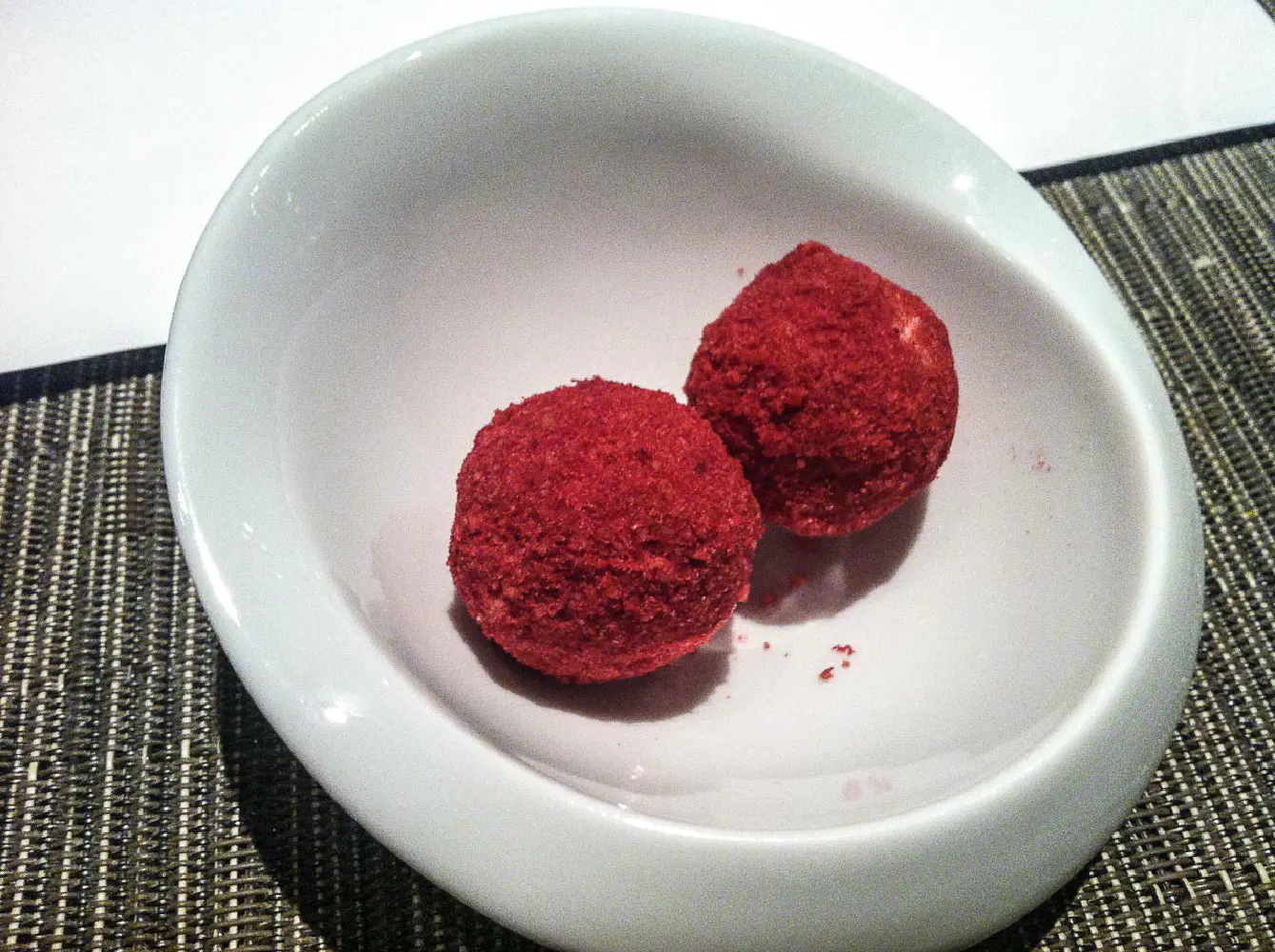 13. White chocolate, gjetost. This was simply shaved raspberry covered chocolate. A nice ending for the night.