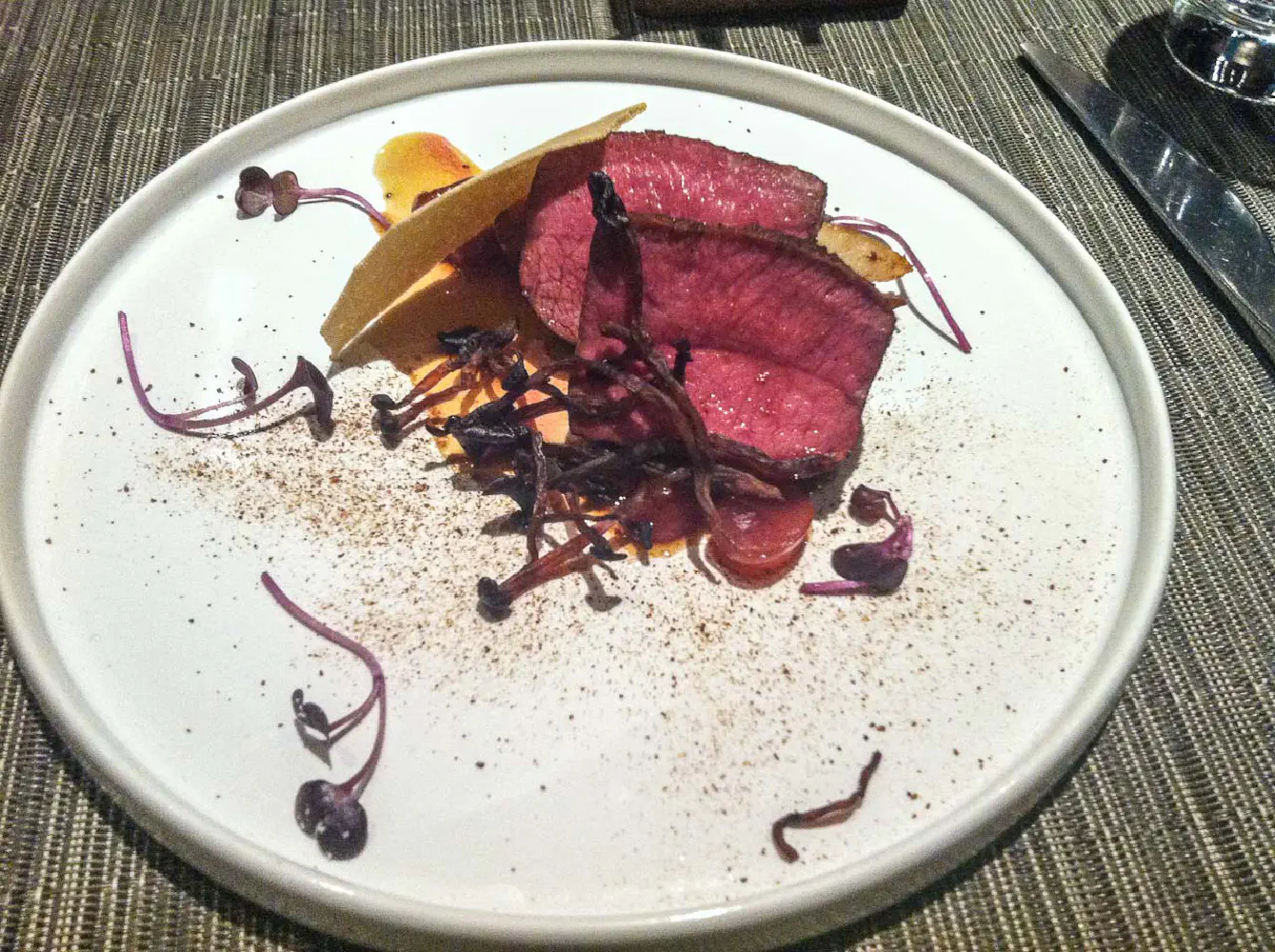 9. Flat iron, mushroom jerky, grape, verjus. This was flat out crazy. I hate mushrooms, but the mushroom jerky in this was delectable. The tall mushroom strands tasted exactly like heavily smoked beef jerky. If mushrooms tasted like this, I’d be in love at last with standard shrooms. The flat iron steak was also very good. As you can tell there was very minimal fat in the cuts that I got.