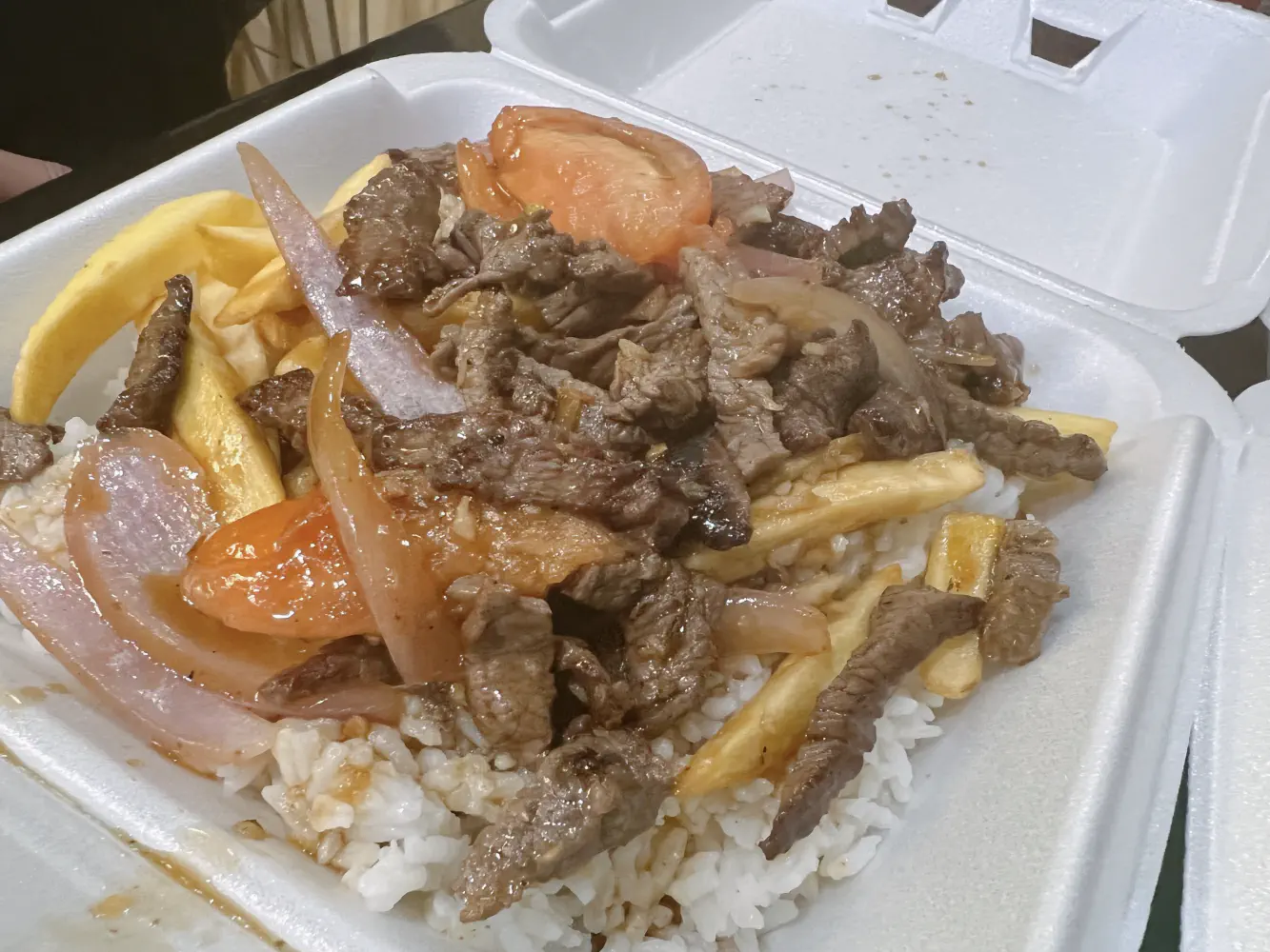 The Lomo Saltado (~$12) came with beef, onions, tomatoes, and french fries. The portion size was very generous. However, the steak quality itself was overcooked and not the best. The sauce was not as flavorful as other Peruvian restaurants we’ve been to.