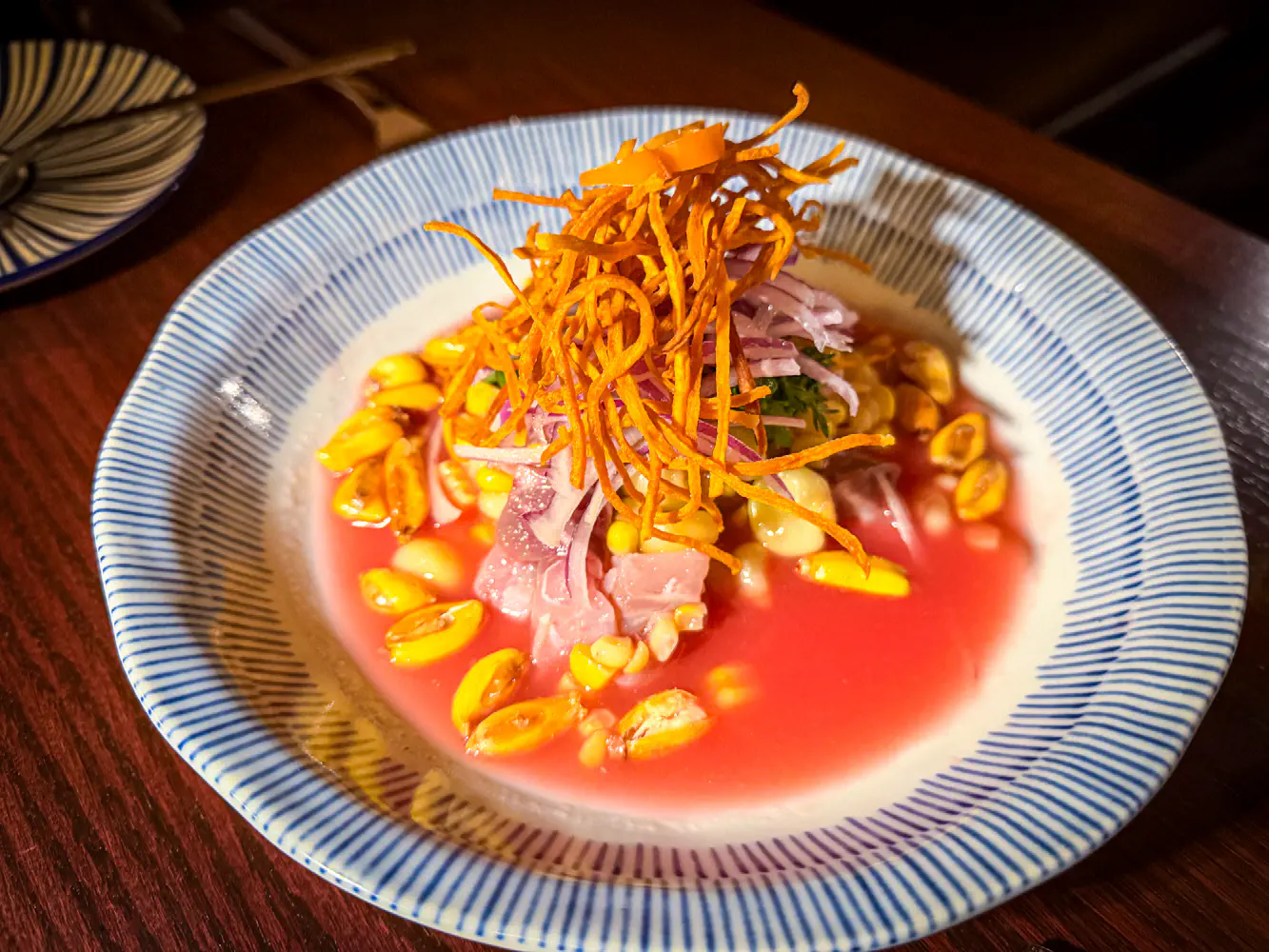 The Ceviche Clasico ($29) came with catch of the day, aji limo-leche de tigre, corn, sweet potato, red onion, and cilantro. It felt like the fish pieces were large chunks and were not as fresh as I would’ve hoped. I did like the leche de tigre though. The sweet potatoes were thinly sliced and fried, so it was a slightly different take on a ceviche. Generally, we thought this was decent, but we’ve had better elsewhere.