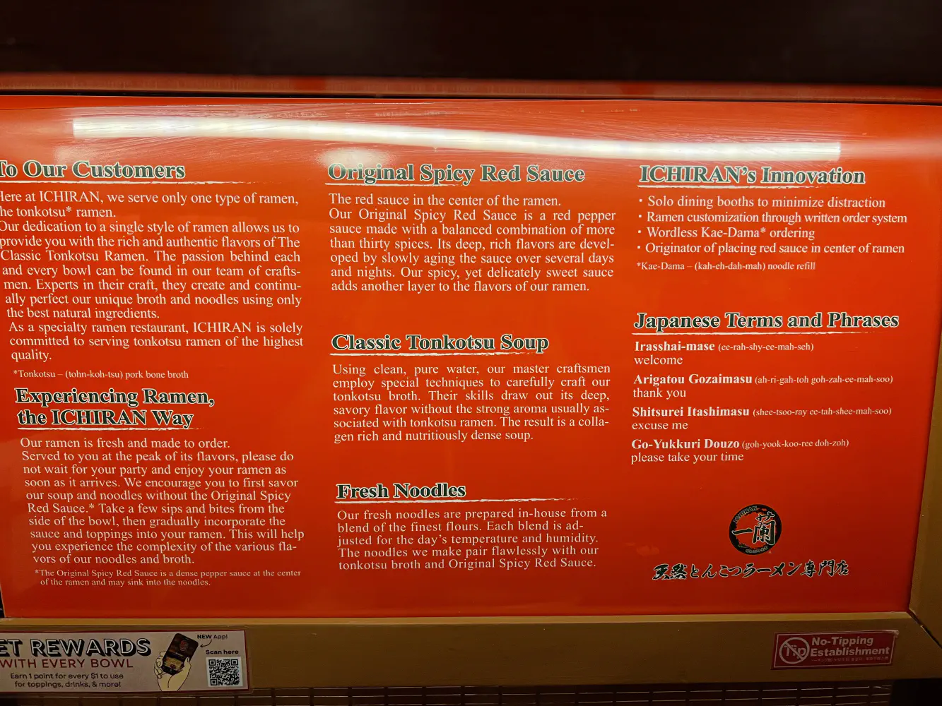 When I arrived here, there was a pretty large line in front of the restaurant. As a solo diner, it took roughly about 20 minutes to get seated. Solo dining in NYC is by far one of the best advantages for dining at restaurants with lines. I was pulled from the line with about 15 people ahead of me and seated in one of the pods inside. On average if you’re at the back of the line, it’s about a 40 minute wait. The outside sign of the restaurant says that the ramen is worth the wait because all locations of Ichiran have lines out the door.