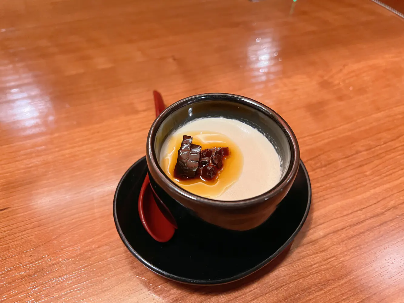 The matcha pudding ($8.90) was a Japanese style pudding with a sweetened green tea base. The black squares on top remind me of black grass jelly, which has this jello consistency with some herbal flavors in it. It’s often found in Asian desserts in both drinks and as a topping on shaved ice. The pudding itself was at a good sweet level. When you scoop the bottom, the matcha provided a noticeable bitter green tea counterbalance and was very delectable.