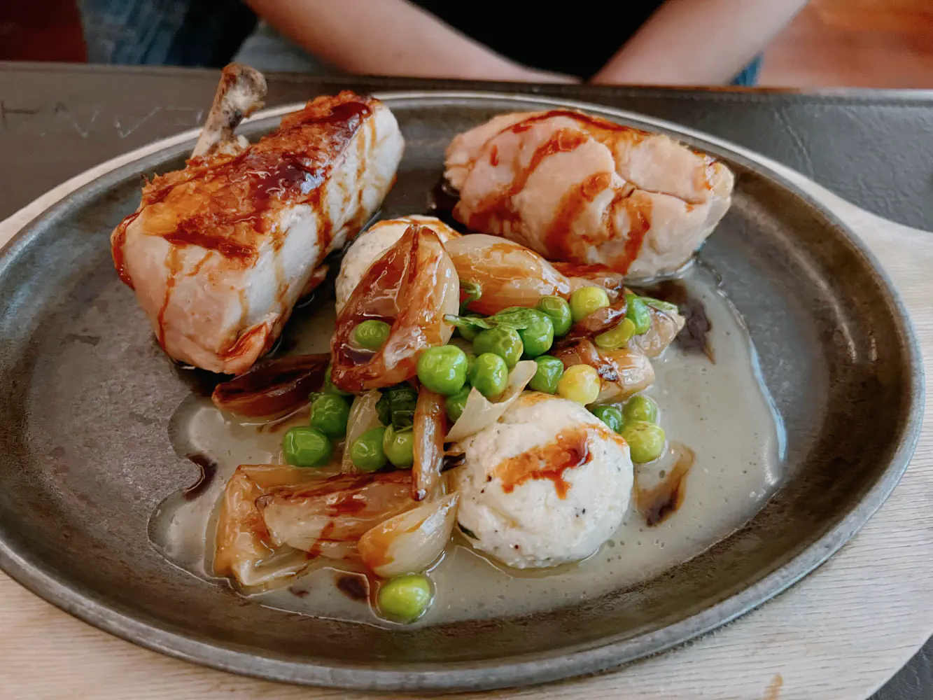 For entree, my partner’s Seared Chicken came with gnudi, English peas, spring onion, basil, and chicken jus. The chicken tasted like it was sous vide, and it was very tender and juicy. The chicken jus was quite pleasant and has inspired me to want to create jus for the chicken I cook at home during the week.