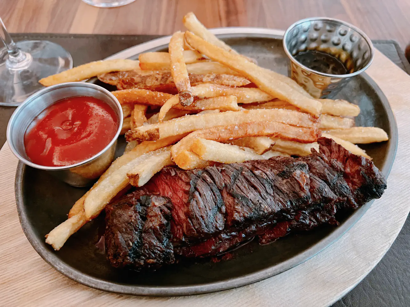 The Pinot Noir ($19) came from Talbott, Kali Hart Estate, Monterey County, CA 2021. This pinot was medium body, but it definitely had some acidic bite to it. It did pair well with the hanger steak, but it’s not something that I really enjoyed drinking on its own otherwise.