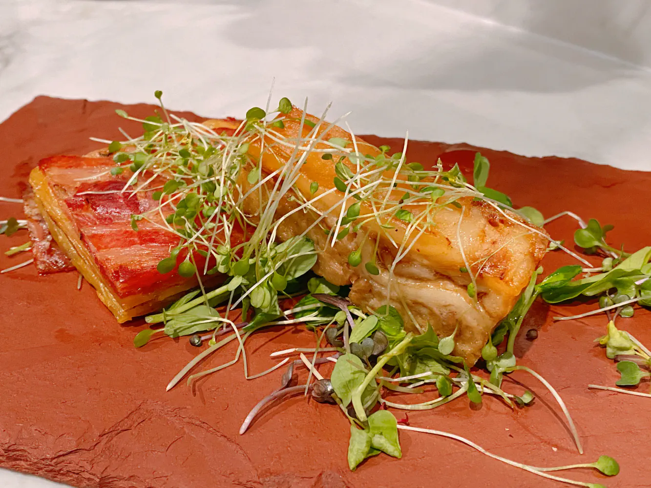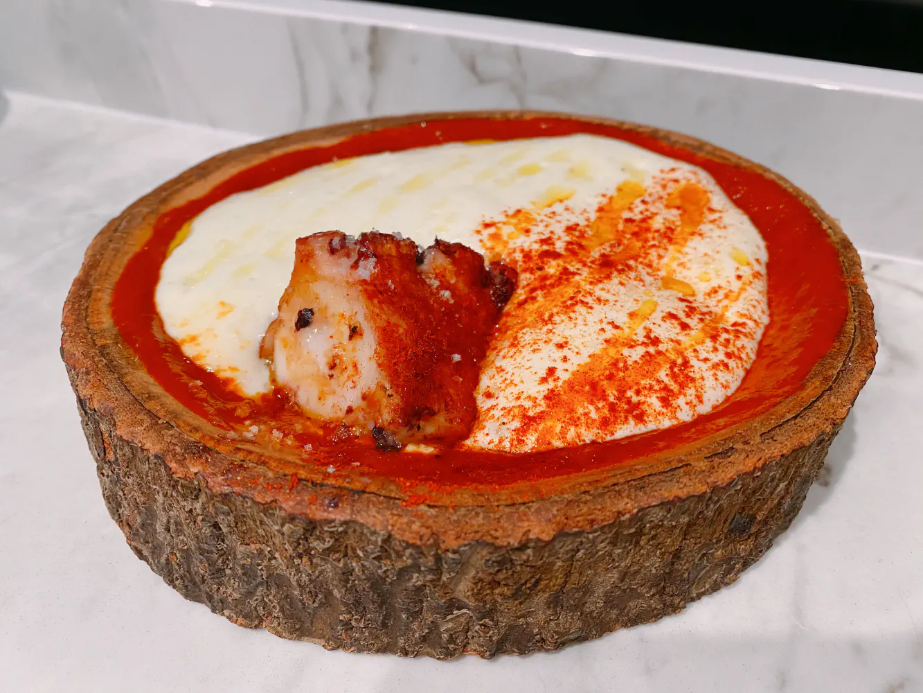 The grilled octopus (pulpo, espuma de patata & mojo picon) was slow cooked Galician octopus with potato foam and mojo picón. They gave us a small sample of the octopus leg, and it was very tender and full of that grilled aroma. The potato foam and red sauce mixed together created a nice kick to the octopus leg. For me, I always love Spanish grilled octopus legs, and this was no exception.