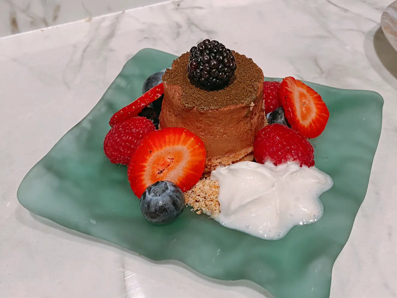 The chocolate mousse (goxua de chocolate & espuma de chufa) was a caro chocolate mousse, yogurt & chufa foam, and fruits. The berries were all very fresh, but of course the star of the show was that chocolate mousse. It was a perfect balance of sweetness.