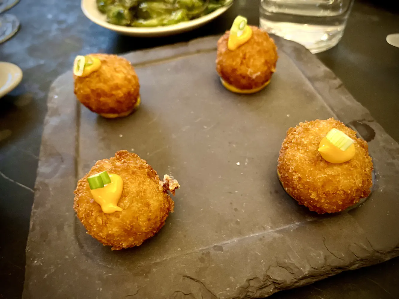 The Pimientos “Estilo” Padrón ($10) came with blistered peppers and sea salt. This tasted similar to shishito peppers, so there isn’t that much difference. It’s the same principle where the unlucky person gets hit with a lot of heat. Fortunately, none of our table got one.