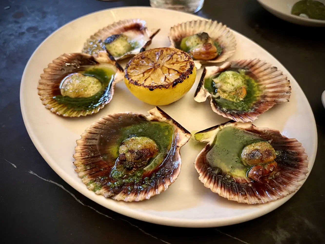 The Zamburiñas ($18) came with 6 bay scallops on the shell. The scallops unfortunately were overcooked because they were rubbery, and they were still attached to the shell. This made it hard to scrape the scallop off. The surrounding flavors in the shell were tasty.