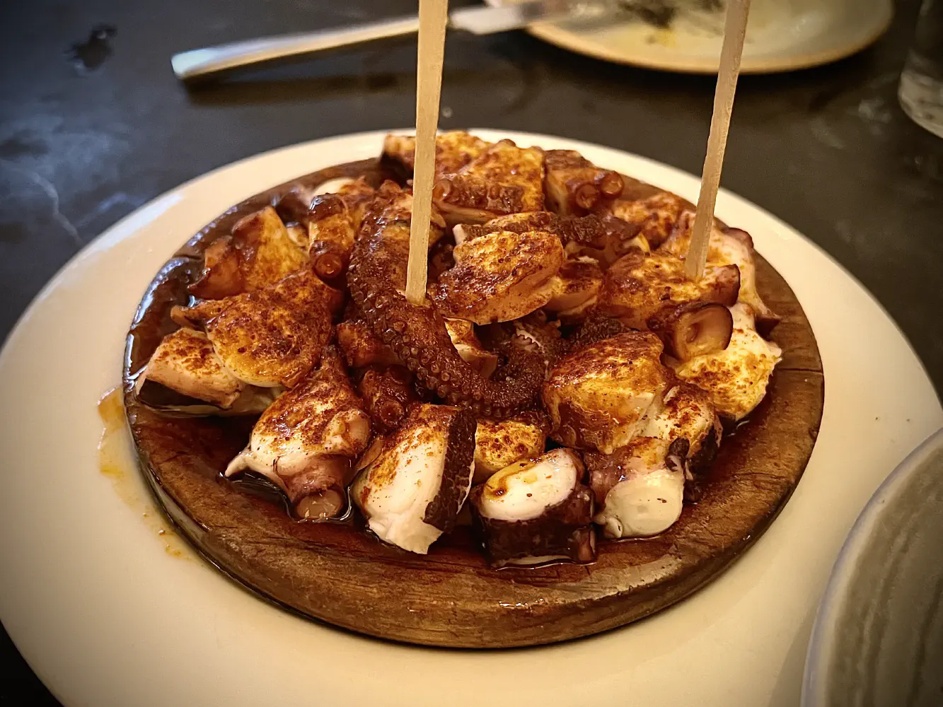 The Pulpo a Feira ($24) came with Galician octopus, sea salt, extra virgin olive oil, and pimenton. This was a super good value. Maybe it’s because they cut up the octopus into smaller portions, but it felt like we got a lot value for the price. The octopus was very tender and flavorful. They did in some cases seasoned it a bit too much with pimenton (aka paprika).