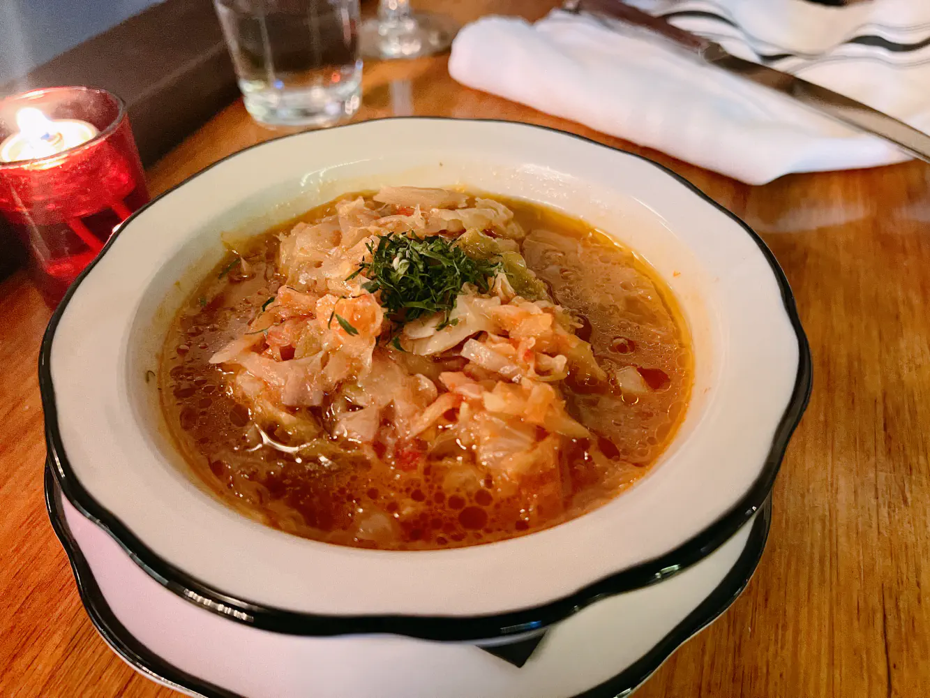 The stuffed cabbage ($11) came in a bowl with ground beef. This was not quite what I was expecting, but it was pretty good. It tasted more like a soup with cabbage and ground beef than it being stuffed. I suspect maybe it was served from a bigger premade pot.