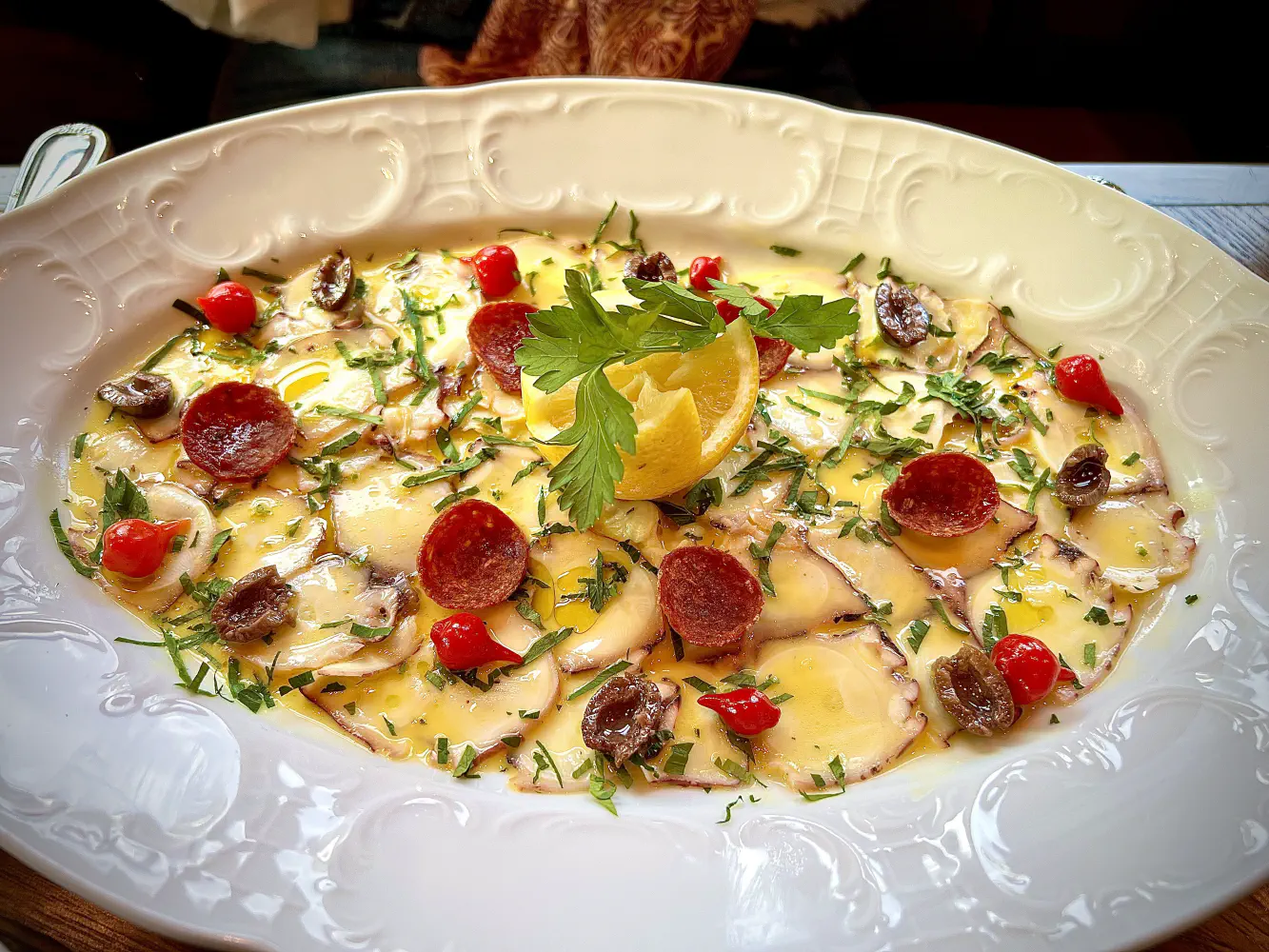 The Spanish Octopus Carpaccio came with sweet drop peppers and crispy pepperoni. This was tasty, and it felt like a good portion. The octopus was fresh, and the oil and flavors were good together.