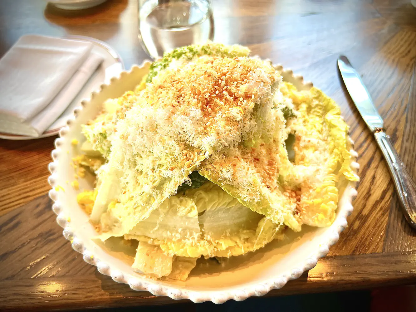 The Sicilian Caesar came with toasted sesame, parmesan, and egg mimosa. This came with a mound of shredded parmesan, and appearance was full of volume. However, the romaine lettuce underneath was uncut, so it was a little annoying to have cut it into small bite-sized pieces. The sauce was very timid, and the dressing was definitely on the sparse side. If you prefer heavier salad dressing, you may be asking for more.