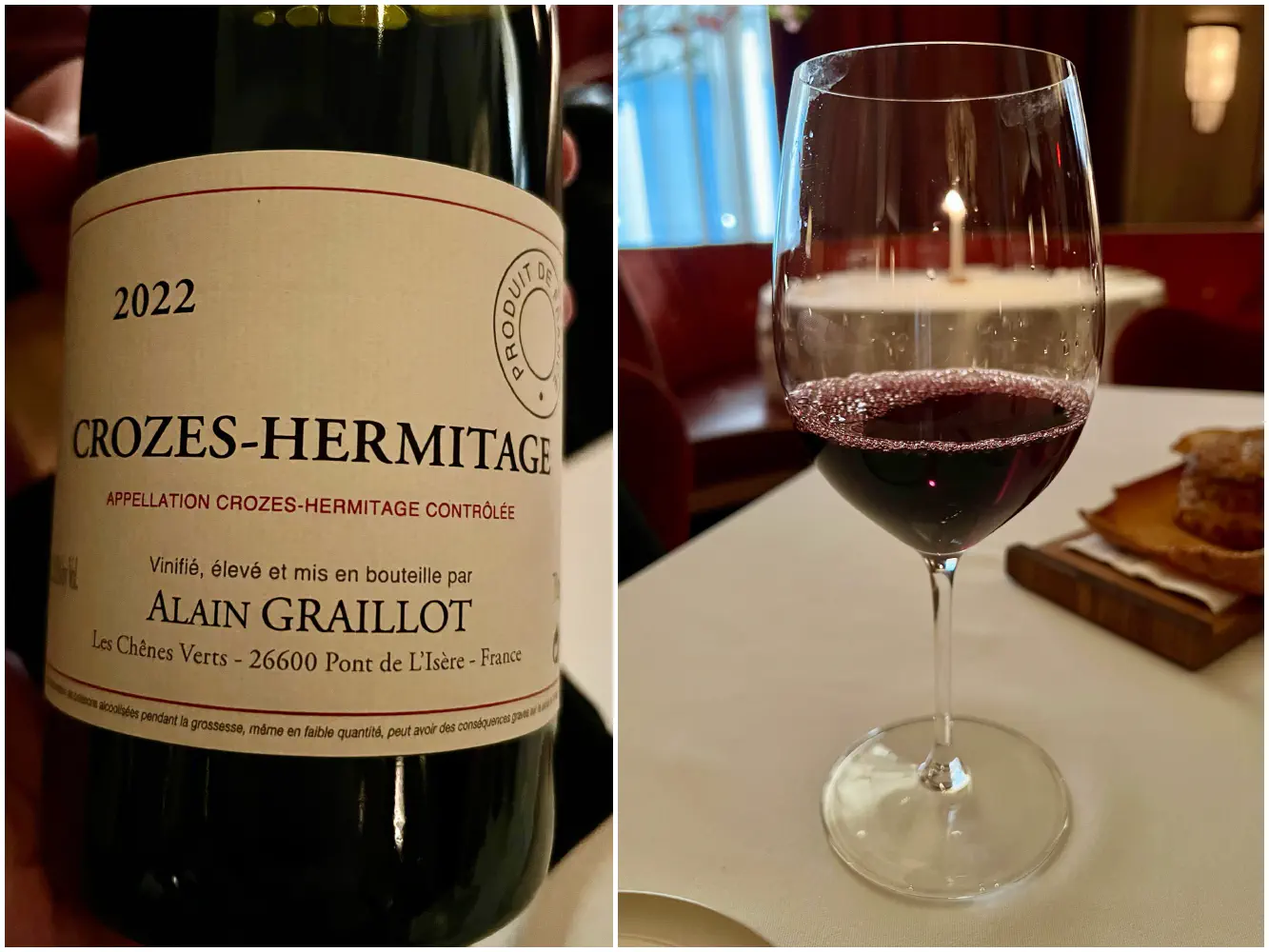 The glass of Syrah from Crozes-Hermitage ($28) came from Alain Graillot, France, 2022. This was a medium body Syrah with a lot of texture, spice, smoke, and red fruits. The flavors danced around in your mouth, and it finished dry and smooth. The smell was velvety with a bit of that barrel smell. This is the second wine I had from the Crozes-Hermitage appellation, and I’ve enjoyed it very much.