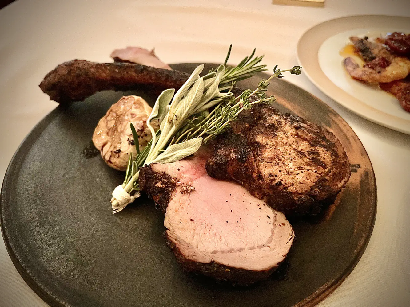 The 36 oz Iberian Duroc Tomahawk Pork Chop ($79) came with porcini, tellicherry, and smoked chili. It was cut in half, and was perfectly cooked. The chop was quite large, and I was surprised by how little meat there was compared to other places. The ribs were cooked thoroughly through, and they had some meat on them if you were desiring to get your hands dirty a bit. The core meat was pretty tasty, though I felt the seasoning was a bit excessive as it became too salty in some parts. Nonetheless, I like this way of cooking pork chops, where they are charred on the edges. It did come with roasted garlic, and the seasoning itself was more dry than wet.