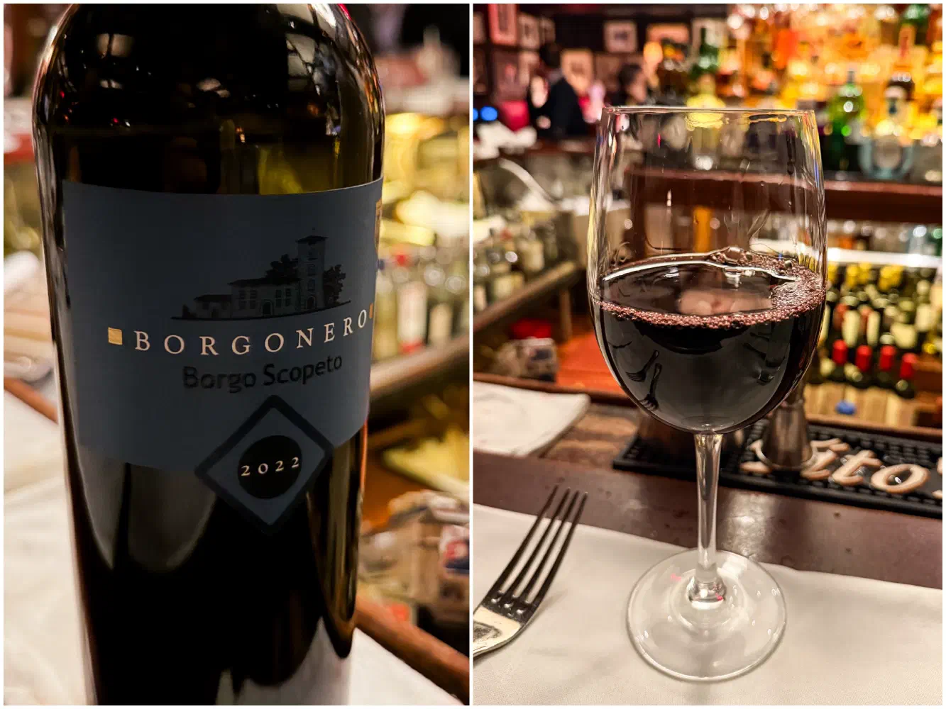 The Borgo Scopeto “Borgonero” ($20) came from Tuscany, Italy, 2022. This red wine was medium body with some luscious black cherry, vanilla, and leather notes to it. It was a great complement for this price point with steak.