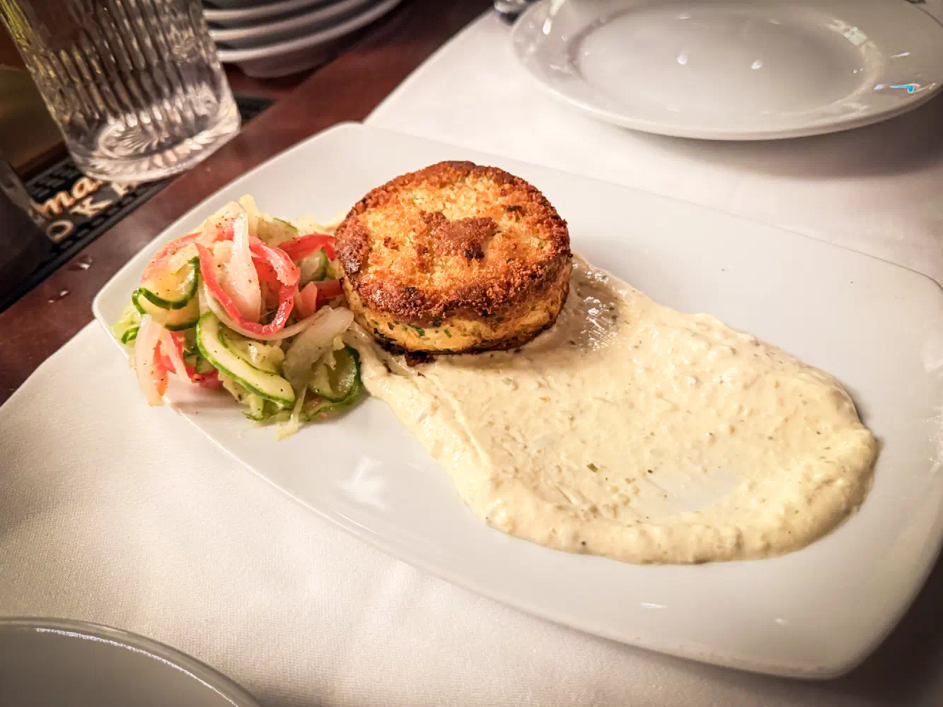 The Jumbo Lump Crab Cake ($27) came with cucumber salad and remoulade. All the ingredients in this are very familiar, so the big question was how was the crab cake. The crab cake tasted OK. There was a lot of crab meat in it, but it tasted as if it was frozen, so it just didn’t taste super fresh. To this day, my favorite crab cake still is at The Grill.