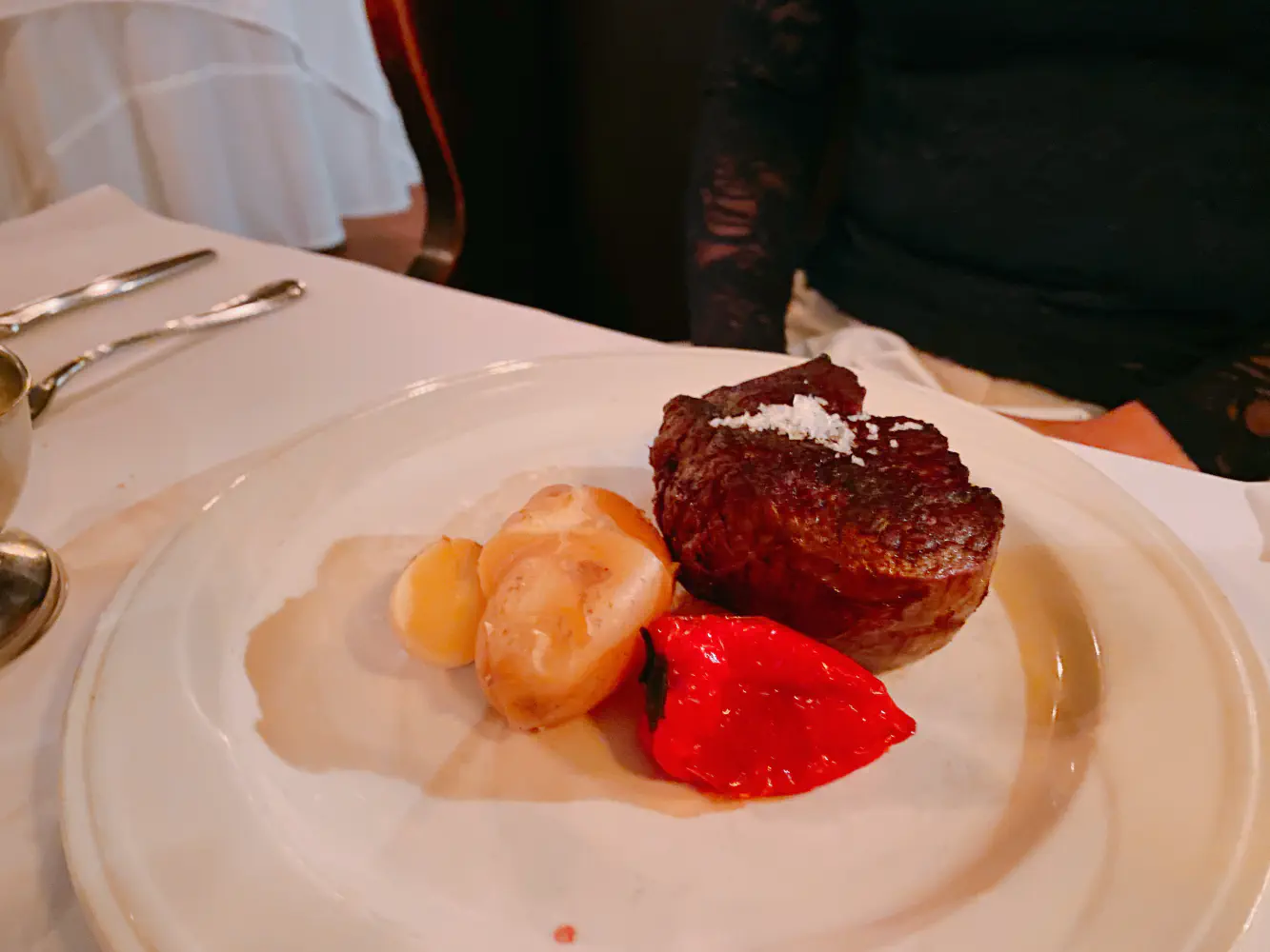 The filet mignon 8 oz was cooked a perfect medium rare and was very delicious. My partner typically orders the filet, and this one was definitely very good. They also ordered a side of mushroom sauce which they enjoyed a lot.