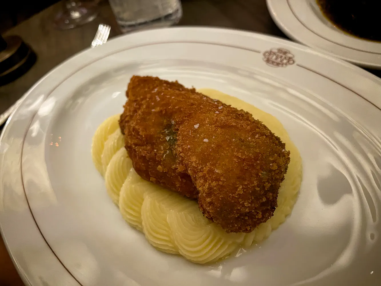 The Chicken Kiev as part of the summer restaurant week menu came garlic butter-filled, crispy chicken breast, and classic mash. At first glance, I thought this was like a chicken cordon-bleu. When you cut the chicken, there’s an oozing of green garlic butter. I want to say it tasted like pesto, but I don’t remember. Regardless, it was decent.