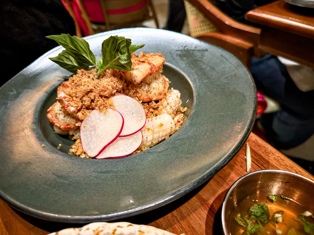 The interior was very festive with elegant elephant-inspired decor. Because there was a large party here due to a post-marathon early dinner, the restaurant was quite busy and loud when we arrived. When we sat down, they immediately came to our table and urgently rushed us to order. After that party left about 15 minutes into our dinner, the servers were less hasty on getting us out.
