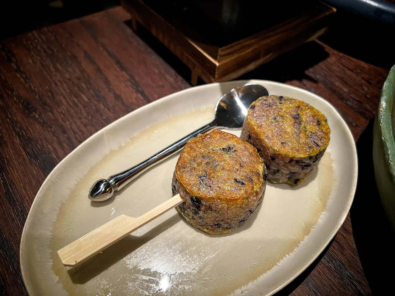 This is the Grilled Sticky Rice with Crab ($10, if ordered as a side) that came with the crab butter. Whether you order the crab butter custard or this by itself, it comes with 2 pieces. I didn’t realize that this was the same as the sides offering, so I actually ordered an extra 2 pieces. It was decently filled with crab, though the crab meat was mostly minced.