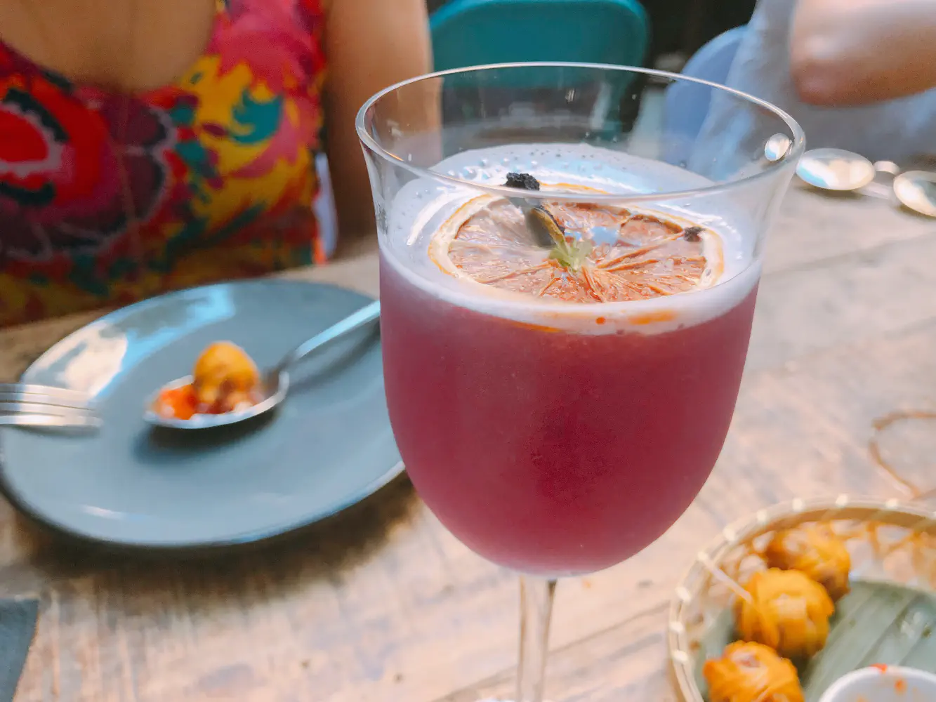 The sway wayla has Brooklyn gin, butterfly pea blossom, cucumber, lemon, and shiso. I thought it was good, especially if you like gin.
