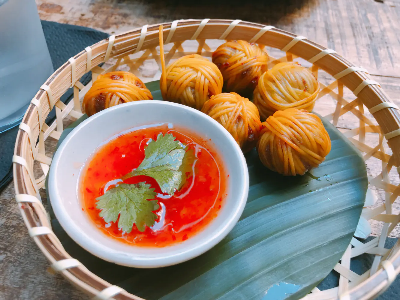 The moo sarong has crispy noodle wrapped pork meatballs, white pepper, and sambal chili. I didn’t think that I would enjoy this as much as I actually did. The noodles around the meatball provide a nice crunch, and the meatball was quite flavorful too.